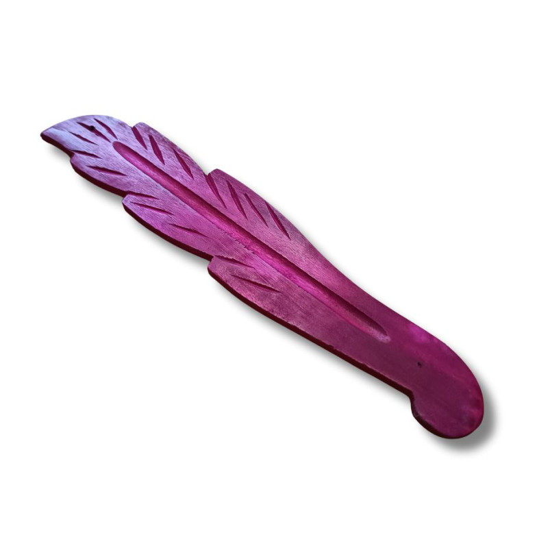 Podłużna podstawka pod kadzidła w kształcie liścia, w delikatnym różowym kolorze, to subtelny i praktyczny dodatek do waszej przestrzeni relaksu, medytacji czy domowego ołtarza. Wykonana z naturalnego drewna mango, łączy lekkość z wytrzymałością, dzięki czemu świetnie sprawdza się w codziennym użytkowaniu. Smukły kształt liścia o długości ok. 26 cm doskonale zbiera opadający popiół z patyczków kadzidlanych, pomagając utrzymać porządek na stoliku, komodzie czy parapecie.