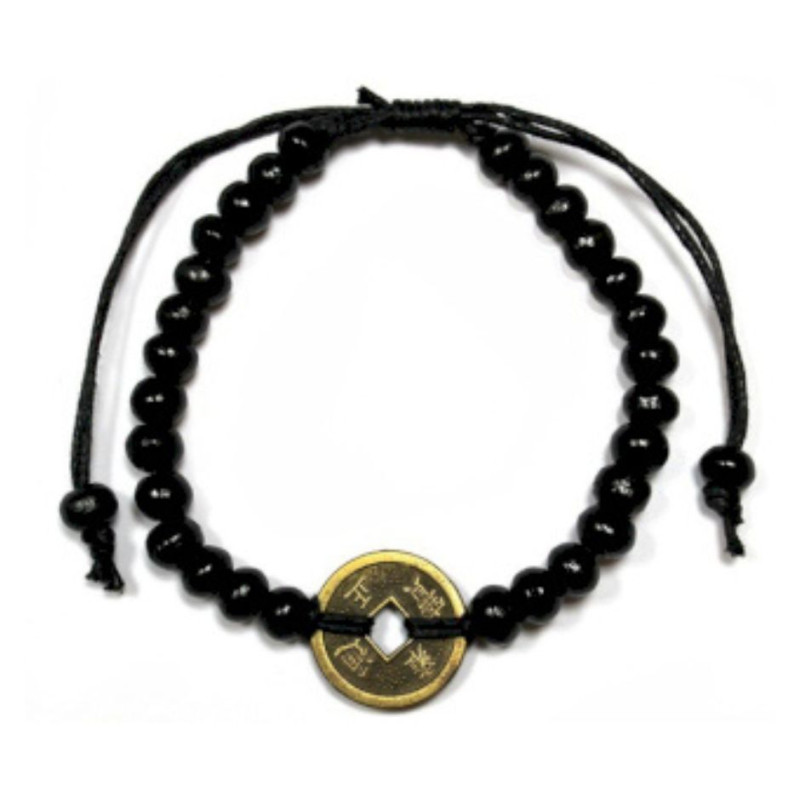 Bransoletka w stylu feng shui z tradycyjną chińską monetą to talizman przyciągający bogactwo, pomyślność i ochronę. Chińskie monety z otworem kwadratowym w środku od wieków uznawane są za symbol nieprzerwanego przepływu energii Qi oraz dobrobytu. Czarny kolor sznurka dodatkowo wzmacnia ochronę przed negatywnymi wpływami.