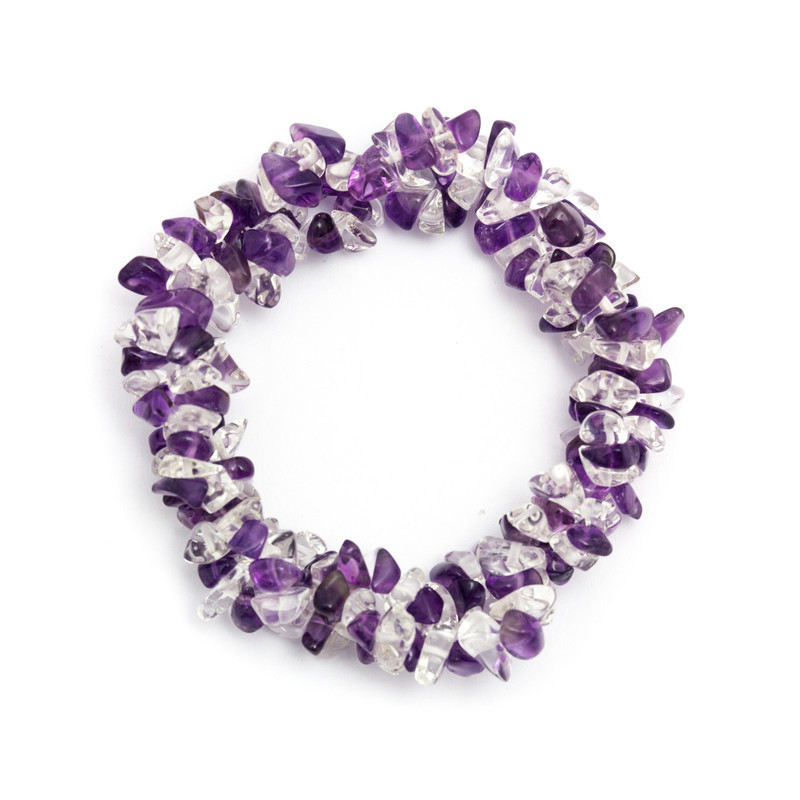 Stylowa i pełna subtelnego uroku bransoletka wykonana z naturalnych kamieni – ametystu oraz kryształu górskiego. To wyjątkowe połączenie dwóch minerałów w zbliżonych proporcjach tworzy harmonijną kompozycję kolorów i energii, idealną zarówno na co dzień, jak i na prezent.