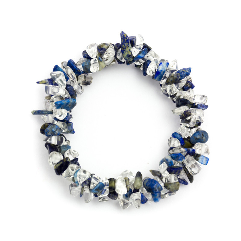 Wyjątkowa bransoletka wykonana z naturalnych kamieni – lapis lazuli oraz kryształu górskiego. Połączenie głębokiego, królewskiego błękitu z przejrzystością kwarcu tworzy elegancką i ponadczasową kompozycję, która przyciąga uwagę i podkreśla indywidualny styl.