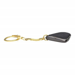 Brelok z szungitem w wykończeniu złoconym i rodowanym to elegancki i praktyczny dodatek wykonany z naturalnego szungitu. Dzięki ozdobnemu wykończeniu oraz kompaktowej formie świetnie sprawdza się jako zawieszka do kluczy, torby lub plecaka. Każdy egzemplarz jest unikatowy, dlatego dostarczone sztuki są podobne do tych widocznych na zdjęciach, ale mogą się nieznacznie różnić.