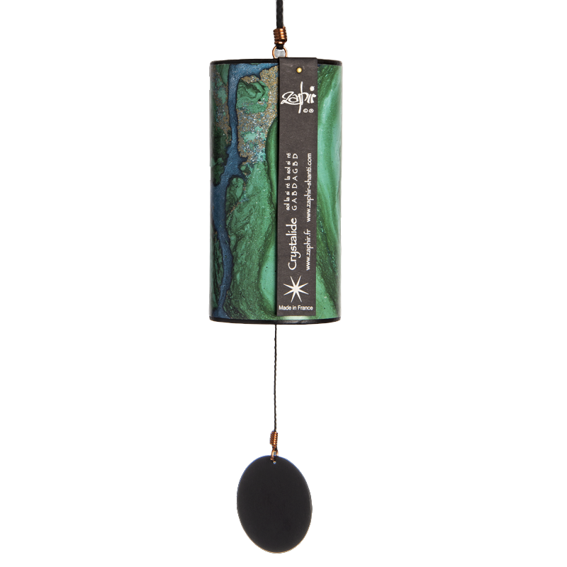 Dzwonek Zaphire składa się z pięciu akordów, każdy z własną magiczną barwą. Dźwięki wydawane są pod wpływem ruchu, dlatego dzwonki Zaphir świetnie sprawdzą się powieszone na zewnątrz. Poddające się szumowi wiatru dzwonki, wydają wysokiej jakości dźwięki oraz krystaliczne brzmienie. Oryginalny i niepowtarzalny wzór każdego dzwonka powstał dzięki specyficznej technice marmurkowania farbą olejną, która pozwoliła na opracowanie szerokiej gamy nowych naturalnych kolorów, nadając dzwonkowi jego niepowtarzalny charakter dbając przy tym o ekologię.