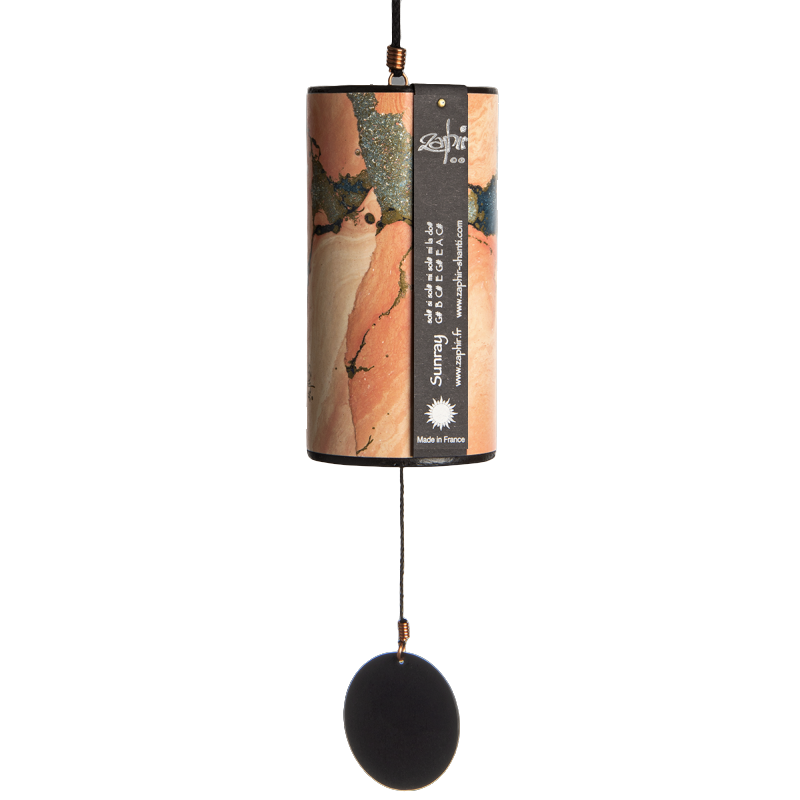 Dzwonek Zaphire składa się z pięciu akordów, każdy z własną magiczną barwą. Dźwięki wydawane są pod wpływem ruchu, dlatego dzwonki Zaphir świetnie sprawdzą się powieszone na zewnątrz. Poddające się szumowi wiatru dzwonki, wydają wysokiej jakości dźwięki oraz krystaliczne brzmienie. Oryginalny i niepowtarzalny wzór każdego dzwonka powstał dzięki specyficznej technice marmurkowania farbą olejną, która pozwoliła na opracowanie szerokiej gamy nowych naturalnych kolorów, nadając dzwonkowi jego niepowtarzalny charakter dbając przy tym o ekologię.