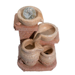 Fontanna została zaprojektowana tak, aby oddać charakter ciepłych, tradycyjnych form ceramicznych znanych z klimatu śródziemnomorskiego ogrodu. Dzbanki o naturalnej teksturze łączą się ze spływającą wodą, tworząc wizualny rytm i atmosferę spokoju. Neutralna kolorystyka i naturalne kształty sprawiają, że produkt komponuje się z różnymi aranżacjami wnętrz, od klasycznych przestrzeni po nowoczesne strefy relaksu.