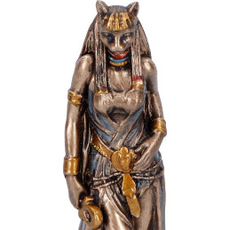 Wprowadź do swojego wnętrza aurę ochrony, elegancji i starożytnej energii dzięki wyjątkowej figurce przedstawiającej Bastet – egipską boginię miłości, radości, muzyki, tańca, domowego ogniska, płodności, a także kotów. Model ukazuje ją jako kobietę z głową kota,w dostojnej, spokojnej pozie, emanującej siłą, równowagą i boskim autorytetem. W lewej dłoni bogini widnieje krzyż Ankh, który jest symbolem życia.