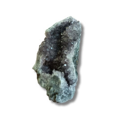 Ametyst - geoda ametystowa Oferowany okaz to geoda ametystowa - naturalny kryształ, który rósł w głębi ziemi przez miliony lat. Pustki, w których narastały kryształy minerałów (tak jak w okazie widocznym na zdjęciu), pojawiają się głównie w skałach magmowych. Takie naturalne próżnie są pamiątkami po znajdujących się w nich niegdyś gazach pochodzących z magmy i lawy, czyli stopów skalnych o temperaturach liczonych w setkach stopni Celsjusza. Uwagi: Ewentualna...