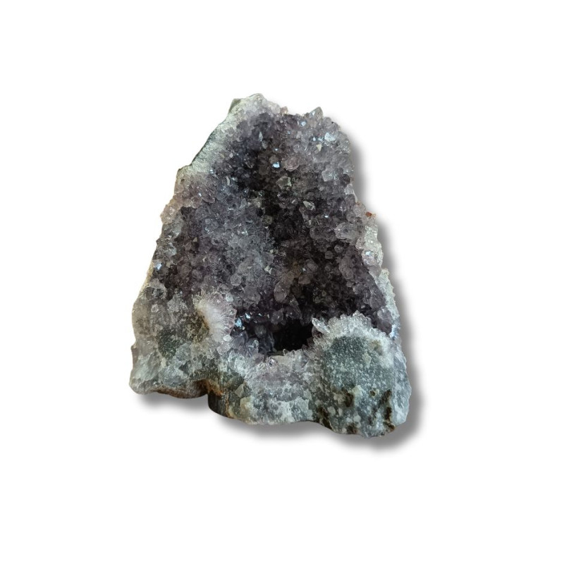 Ta geoda waży 462 g i charakteryzuje się praktycznymi wymiarami, dzięki czemu łatwo dopasujesz ją do każdej przestrzeni. Jej wysokość to ok. 8 cm, a szerokość u podstawy wynosi ok. 9 cm. To kompaktowy, a jednocześnie wyrazisty element, który może pełnić funkcję symbolicznego talizmanu oraz naturalnego akcentu dekoracyjnego.