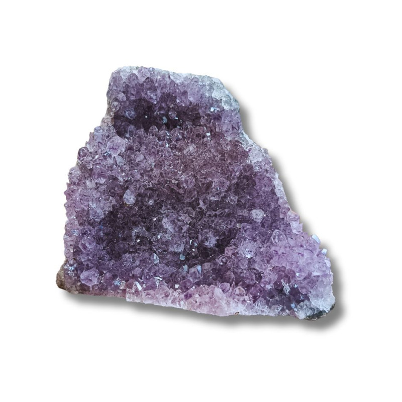 Ametyst jest ceniony w pracy z energią – wspiera intuicję, uspokaja umysł, sprzyja regeneracji emocjonalnej oraz oczyszczaniu przestrzeni. Umieszczony w sypialni może poprawiać jakość snu, a w miejscu pracy wprowadzać jasność myślenia i większą koncentrację.