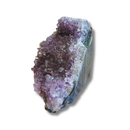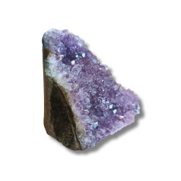 Ametyst - geoda ametystowa Oferowany okaz to geoda ametystowa - naturalny kryształ, który rósł w głębi ziemi przez miliony lat. Pustki, w których narastały kryształy minerałów (tak jak w okazie widocznym na zdjęciu), pojawiają się głównie w skałach magmowych. Takie naturalne próżnie są pamiątkami po znajdujących się w nich niegdyś gazach pochodzących z magmy i lawy, czyli stopów skalnych o temperaturach liczonych w setkach stopni Celsjusza. Uwagi: Ewentualna...