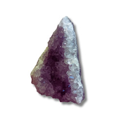 Ametyst - geoda ametystowa Oferowany okaz to geoda ametystowa - naturalny kryształ, który rósł w głębi ziemi przez miliony lat. Pustki, w których narastały kryształy minerałów (tak jak w okazie widocznym na zdjęciu), pojawiają się głównie w skałach magmowych. Takie naturalne próżnie są pamiątkami po znajdujących się w nich niegdyś gazach pochodzących z magmy i lawy, czyli stopów skalnych o temperaturach liczonych w setkach stopni Celsjusza. Uwagi: Ewentualna...