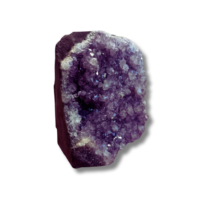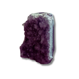 Ametyst - geoda ametystowa Oferowany okaz to geoda ametystowa - naturalny kryształ, który rósł w głębi ziemi przez miliony lat. Pustki, w których narastały kryształy minerałów (tak jak w okazie widocznym na zdjęciu), pojawiają się głównie w skałach magmowych. Takie naturalne próżnie są pamiątkami po znajdujących się w nich niegdyś gazach pochodzących z magmy i lawy, czyli stopów skalnych o temperaturach liczonych w setkach stopni Celsjusza. Uwagi: Ewentualna...