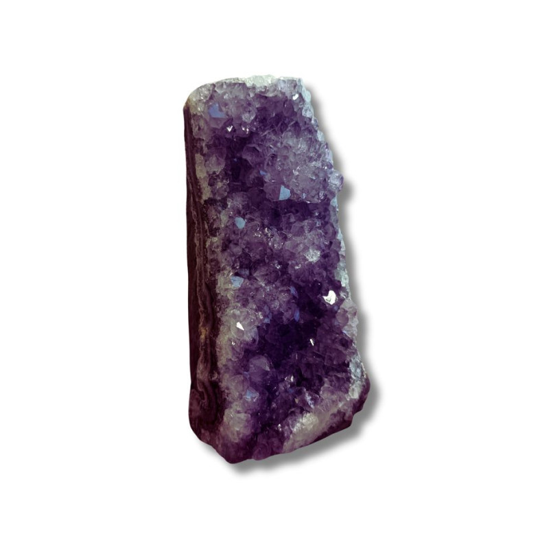 Ametyst jest ceniony w pracy z energią – wspiera intuicję, uspokaja umysł, sprzyja regeneracji emocjonalnej oraz oczyszczaniu przestrzeni. Umieszczony w sypialni może poprawiać jakość snu, a w miejscu pracy wprowadzać jasność myślenia i większą koncentrację.
