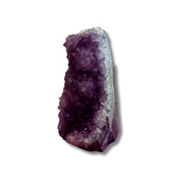Ametyst - geoda ametystowa Oferowany okaz to geoda ametystowa - naturalny kryształ, który rósł w głębi ziemi przez miliony lat. Pustki, w których narastały kryształy minerałów (tak jak w okazie widocznym na zdjęciu), pojawiają się głównie w skałach magmowych. Takie naturalne próżnie są pamiątkami po znajdujących się w nich niegdyś gazach pochodzących z magmy i lawy, czyli stopów skalnych o temperaturach liczonych w setkach stopni Celsjusza. Uwagi: Ewentualna...