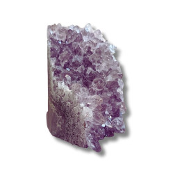 Ametyst - geoda ametystowa Oferowany okaz to geoda ametystowa - naturalny kryształ, który rósł w głębi ziemi przez miliony lat. Pustki, w których narastały kryształy minerałów (tak jak w okazie widocznym na zdjęciu), pojawiają się głównie w skałach magmowych. Takie naturalne próżnie są pamiątkami po znajdujących się w nich niegdyś gazach pochodzących z magmy i lawy, czyli stopów skalnych o temperaturach liczonych w setkach stopni Celsjusza. Uwagi: Ewentualna...