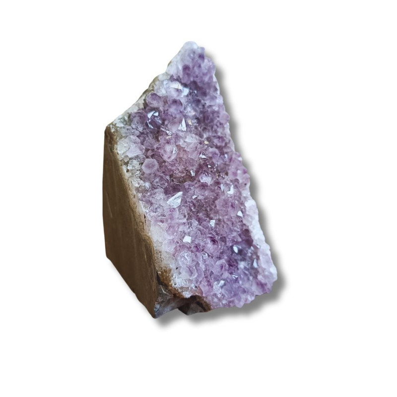 Ametyst jest ceniony w pracy z energią – wspiera intuicję, uspokaja umysł, sprzyja regeneracji emocjonalnej oraz oczyszczaniu przestrzeni. Umieszczony w sypialni może poprawiać jakość snu, a w miejscu pracy wprowadzać jasność myślenia i większą koncentrację.