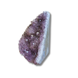 Ametyst - geoda ametystowa Oferowany okaz to geoda ametystowa - naturalny kryształ, który rósł w głębi ziemi przez miliony lat. Pustki, w których narastały kryształy minerałów (tak jak w okazie widocznym na zdjęciu), pojawiają się głównie w skałach magmowych. Takie naturalne próżnie są pamiątkami po znajdujących się w nich niegdyś gazach pochodzących z magmy i lawy, czyli stopów skalnych o temperaturach liczonych w setkach stopni Celsjusza. Uwagi: Ewentualna...
