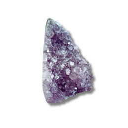 Ametyst - geoda ametystowa Oferowany okaz to geoda ametystowa - naturalny kryształ, który rósł w głębi ziemi przez miliony lat. Pustki, w których narastały kryształy minerałów (tak jak w okazie widocznym na zdjęciu), pojawiają się głównie w skałach magmowych. Takie naturalne próżnie są pamiątkami po znajdujących się w nich niegdyś gazach pochodzących z magmy i lawy, czyli stopów skalnych o temperaturach liczonych w setkach stopni Celsjusza. Uwagi: Ewentualna...