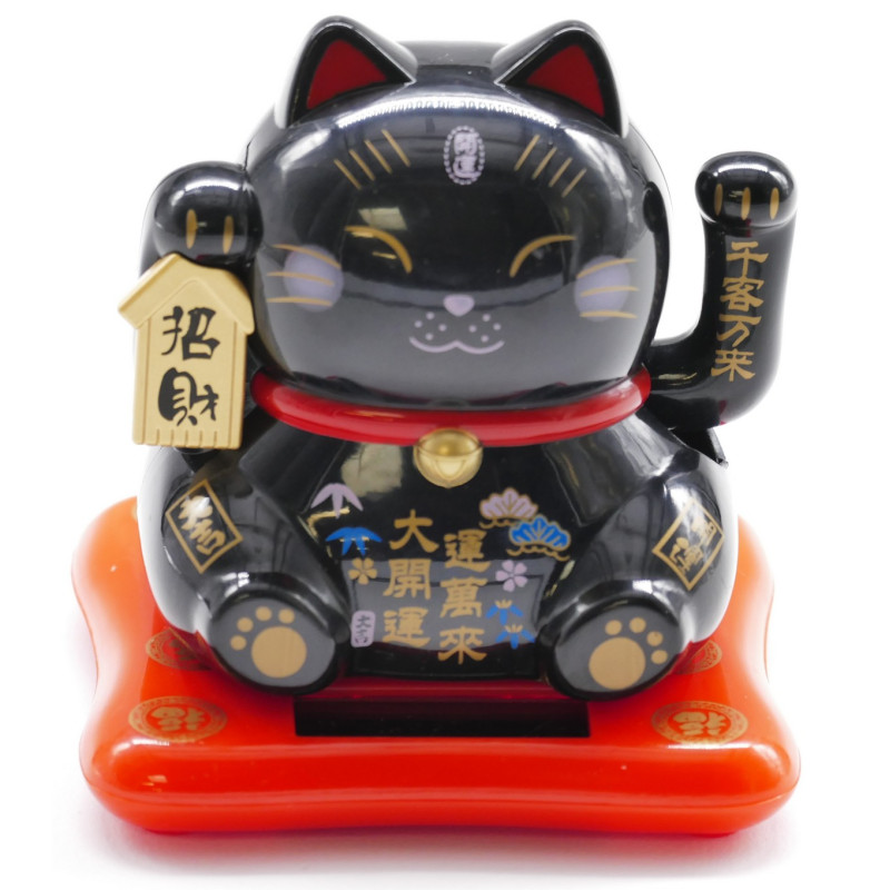 Przyciągnij szczęście, dobrobyt i pozytywną energię dzięki wyjątkowemu czarnemu kotkowi Maneki-neko - tradycyjnemu japońskiemu symbolowi pomyślności. Ten uroczy kotek, zasilany energią słoneczną, porusza lewą łapką w geście zapraszania, co według japońskiej tradycji przyciąga klientów, pieniądze oraz dobre wibracje. Umieszczony w miejscu z dostępem do światła - sztucznego lub naturalnego, zaczyna samodzielnie machać łapką, przywołując szczęście i pomyślność do miejsca, w którym akurat się znajduje. Uwaga: światło naturalne sprawia, że kotek macha łapką energicznie, natomiast światło sztuczne nie powoduje tak spektakularnego efektu.