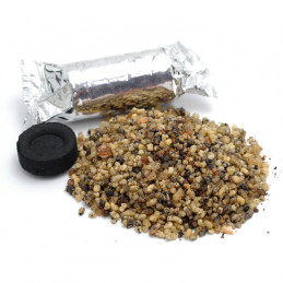 Opakowanie zawiera około 60 g kadzidła oraz 5 tabletek węgielka, co zapewnia wygodne użytkowanie od razu po otwarciu.