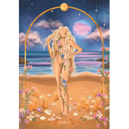 Goddess Astrology Oracle Cards to niezwykła talia, która ukazuje głębokie połączenie między astrologią a energią Boskiej Kobiecości - relację tak starą i potężną jak sam kosmos. Oba te obszary należą do świata uniwersalnych, archetypowych sił, które przenikają się i wzajemnie uzupełniają. Talia stanowi punkt styku tych dwóch światów, oferując unikalne narzędzie do ich odkrywania i interpretowania. Każda karta pozwala zgłębiać różne aspekty energii, cykli i wewnętrznych procesów, prowadząc do głębszego zrozumienia siebie i otaczającej rzeczywistości.