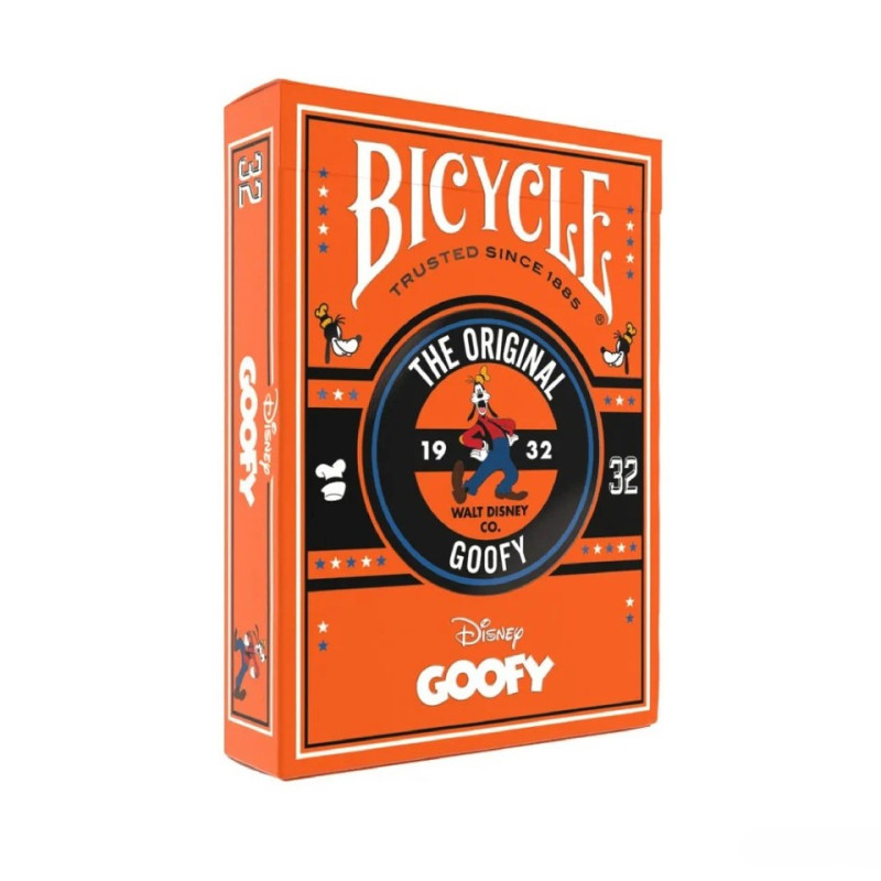 Karty Bicycle Goofy zostały zaprojektowane w formacie pokerowym i zawierają 56 kart: 52 klasyczne, 2 jokery oraz 2 karty dodatkowe. Rewers zdobią wyjątkowe grafiki inspirowane Goofym, a pudełko wykończono eleganckim miejscowym lakierem, co nadaje mu luksusowy charakter. Dzięki wykończeniu Air-Cushion Finish® talia doskonale sprawdza się podczas gry, gwarantując płynne tasowanie i trwałość.