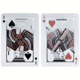 Każda karta w talii również pokryta jest tym samym srebrnym finiszem, co tworzy spójny, efektowny wygląd i podkreśla wyjątkowy charakter zestawu. Projekt graficzny jest w pełni autorski - zarówno as pik, jokery, jak i figury czy tył kart odwołują się do ikon filmowych Bond-gadżetów i filmowej historii agenta 007 przez dekady. UWAGA: Karty te są 7 razy piękniejsze w rzeczywistości niż na zdjęciach!