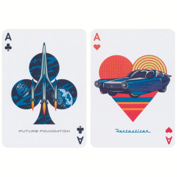 Talia oferuje unikalny design inspirowany latami 60. i estetyką science-fiction - wyraziste, nasycone kolory i graficzne detale przenoszą w klimat epoki, gdy rodziła się legenda Super-Teamu. Każda karta - włącznie z figurami, asami, jokerami i tyłem - została zaprojektowana od podstaw ręcznie, co gwarantuje wyjątkowość i spójny styl.