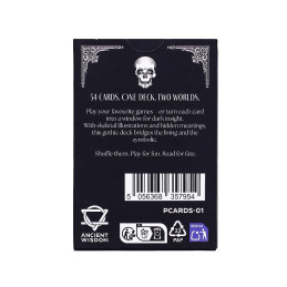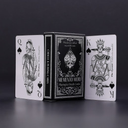 To zestaw, który łączy klasyczną funkcję kart do gry z artystyczną i symboliczną grafiką w stylu gotyckim. Grafiki inspirowane motywem „Memento Mori” – czyli refleksją nad życiem i przemijaniem – nadają każdej talii głębszy kontekst duchowy, dzięki czemu produkt sprawdza się zarówno w tradycyjnych grach karcianych, jak i jako element kolekcjonerski lub narzędzie do refleksji.