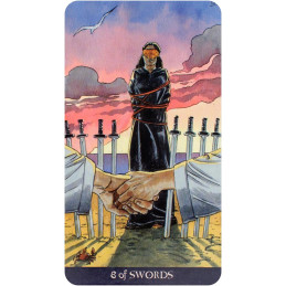 mini Smith-Waite Tarot borderless (ang.) Talia tarota z grafiką Pameli Colman Smith, stworzoną w 1909 roku pod kierunkiem Arthura E. Waite'a, prezentowana w formacie mini bez obramowania. Talia zawiera 78 kart tarota bez obramowania i cztery miniaturki dzieł Smitha nie będących kartami tarota. Zielone rewersy kart przedstawiają wzór Tudor Rose z inicjałami PCS. Miniaturowa talia zawiera 60-stronicową broszurę ze znaczeniami kart, wydanie w języku angielskim. Autor:...