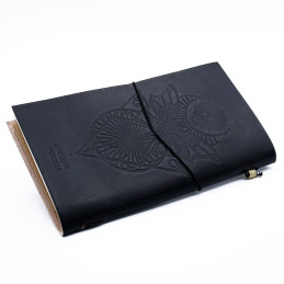 Stylowy, ręcznie wykonany notes z wysokiej jakości skóry naturalnej w kolorze czarnym. Inspirowany magicznym klimatem i klasycznym stylem vintage, idealnie sprawdzi się dla osób kochających wyjątkowe przedmioty z duszą. Każdy egzemplarz ma swój własny, unikalny charakter.