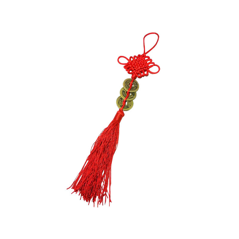 Tradycyjny talizman inspirowany kulturą chińską i filozofią Feng Shui. Trzy dekoracyjne monety połączone czerwonym sznurkiem i ułożone jedna nad drugą od wieków symbolizują dobrobyt, szczęście oraz pomyślność finansową. Ten niewielki amulet jest jednym z najbardziej rozpoznawalnych symboli przyciągania bogactwa w tradycji Feng Shui.