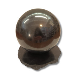 Każda kula jest wykonana z naturalnego szungitu pochodzącego z Karelii (Rosja) – jedynego znanego na świecie złoża tego wyjątkowego minerału. Jej gładka, głęboko czarna powierzchnia z subtelnym metalicznym połyskiem przyciąga wzrok i emanuje spokojem. W zestawie znajduje się solidna podstawka, która stabilnie utrzymuje kulę i eksponuje jej naturalne piękno.