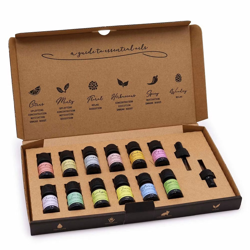 zestaw zawiera olejki eteryczne w praktycznym opakowaniu zbiorczym.