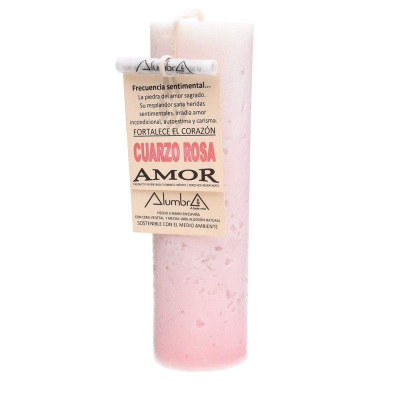 Świeca wykonana jest z wosku sojowego i posiada knot z 100% naturalnej bawełny. Jest ręcznie wytwarzana w Hiszpanii, z dbałością o jakość i środowisko. Do każdej świecy dołączona jest prosta instrukcja rytuału oraz modlitwa/intencja, którą możesz wypowiedzieć podczas zapalania płomienia, aby wzmocnić działanie miłości, czułości i uzdrawiającej energii różowego kwarcu.