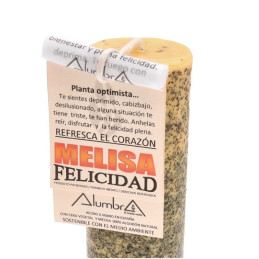 Świeca wykonana jest z wosku roślinnego i posiada knot z 100% naturalnej bawełny. Jest ręcznie wytwarzana w Hiszpanii, w sposób przyjazny dla środowiska. Do każdej świecy dołączony jest prosty podręcznik z instrukcją rytuału oraz modlitwą/intencją, którą można wypowiedzieć podczas zapalania płomienia, aby ukierunkować energię na szczęście, radość i wewnętrzny spokój.