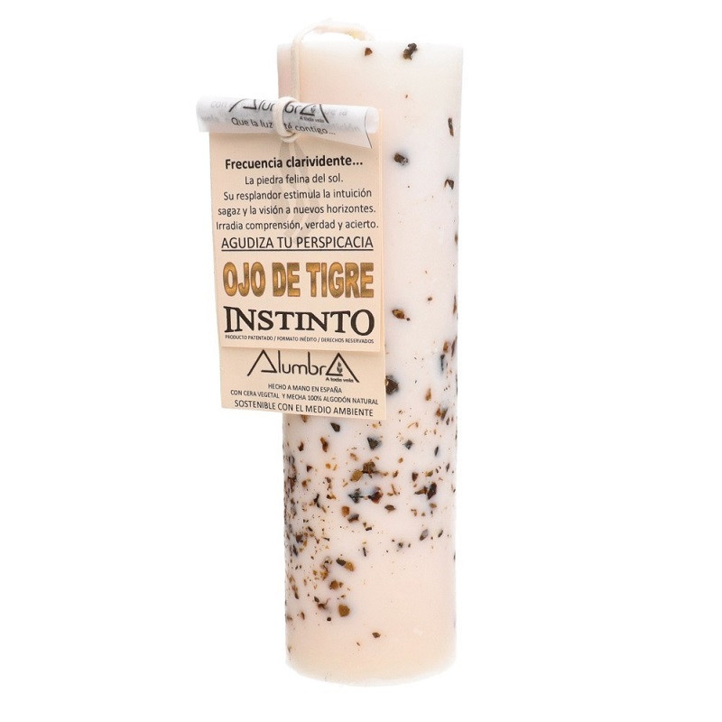 Rytualna świeca Tiger’s Eye – Instinct została stworzona, aby wzmacniać instynkt, intuicję i zdolność podejmowania trafnych decyzji. Zawiera energię tygrysiego oka – „kociego kamienia słońca”, który od wieków kojarzony jest z odwagą, przenikliwością, ochroną i wewnętrzną siłą. Jej wibracja pomaga wyostrzyć zmysły, zauważać to, co ukryte między słowami, oraz patrzeć dalej niż tylko na to, co oczywiste.