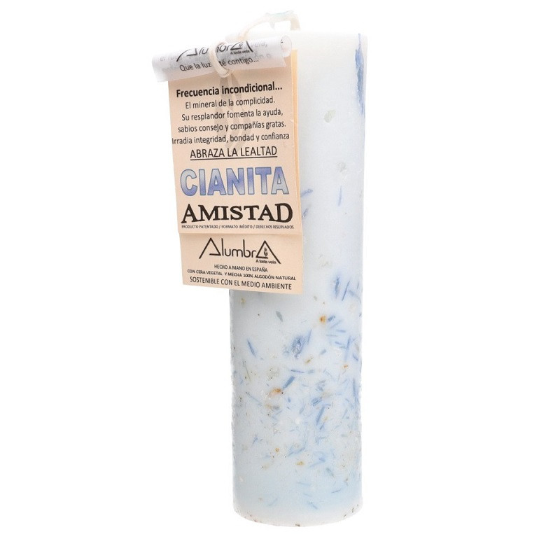 Świeca rytualna Friendship z cyjanitem została zaprojektowana z myślą o wzmacnianiu więzi między ludźmi: przyjaźni, lojalności, wzajemnym wsparciu i zaufaniu. Wykonana z wosku sojowego oraz knota z 100% naturalnej bawełny, jest ręcznie robiona w Hiszpanii w krótkich seriach, z dbałością o jakość i środowisko. Cyjanit (kyanit) nazywany jest „minerałem współodczuwania” – jego subtelna energia sprzyja serdecznej komunikacji, życzliwości i otwartości serca.