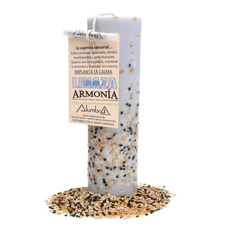 Świeca rytualna Harmonia z ziołem siemię lniane została stworzona dla osób, które pragną więcej spokoju, łagodności i wewnętrznej równowagi w codziennym życiu. Wykonana jest z roślinnego wosku oraz knota z naturalnej bawełny, ręcznie wytwarzana w Hiszpanii, w krótkich seriach, z troską o jakość i środowisko. Siemię lniane bywa nazywana „aspiryną zmysłów” – w tradycji zielarskiej przypisuje się jej działanie łagodzące napięcia, wyciszające rozdrażnienie i pomagające uspokoić nadmiernie pobudzone zmysły.