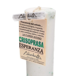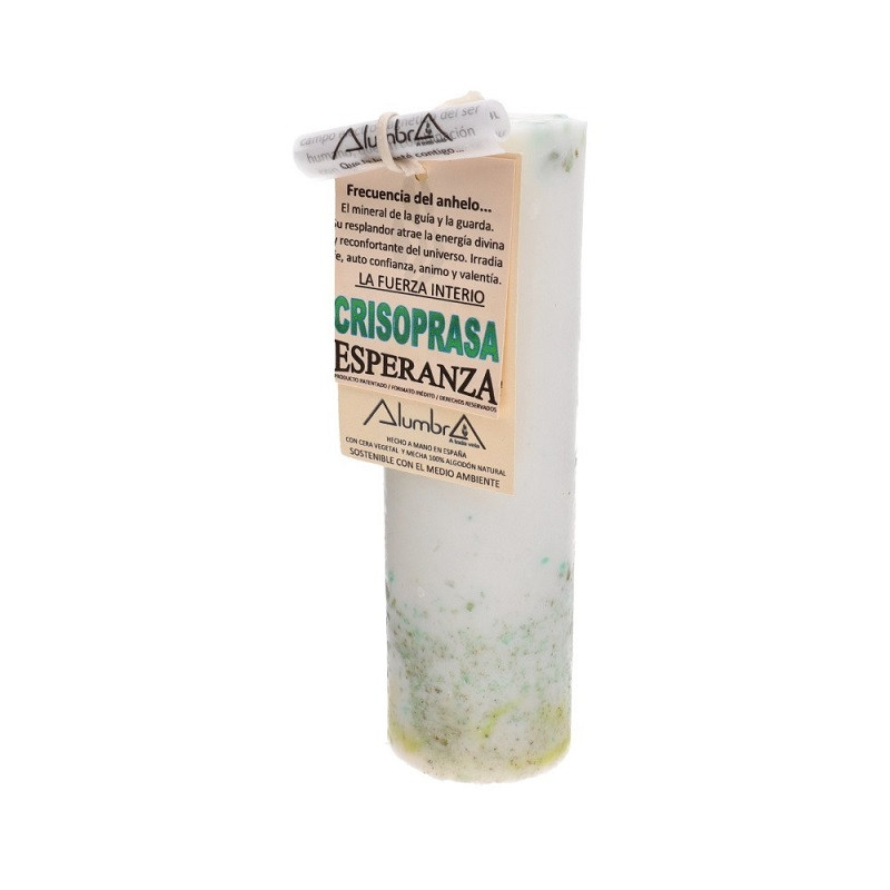 Świeca rytualna Nadzieja z kamieniem chryzopraz została stworzona dla osób, które potrzebują przypomnienia, że nawet po trudnych doświadczeniach można na nowo poczuć wiarę w życie i w siebie. Wykonana jest z roślinnego wosku sojowego oraz knota z naturalnej bawełny, ręcznie wytwarzana w Hiszpanii, w krótkich seriach, z troską o środowisko. W opisie producenta chryzopraz określono jako minerał o „częstotliwości tęsknoty” – jego blask przyciąga boską, kojącą energię wszechświata, promieniuje wiarą, zaufaniem do siebie, odwagą i dzielnością. To kamień wewnętrznej otuchy i delikatnego, ale silnego „podniesienia na duchu”.