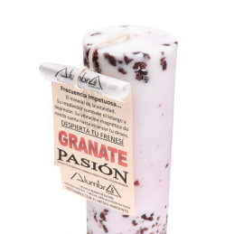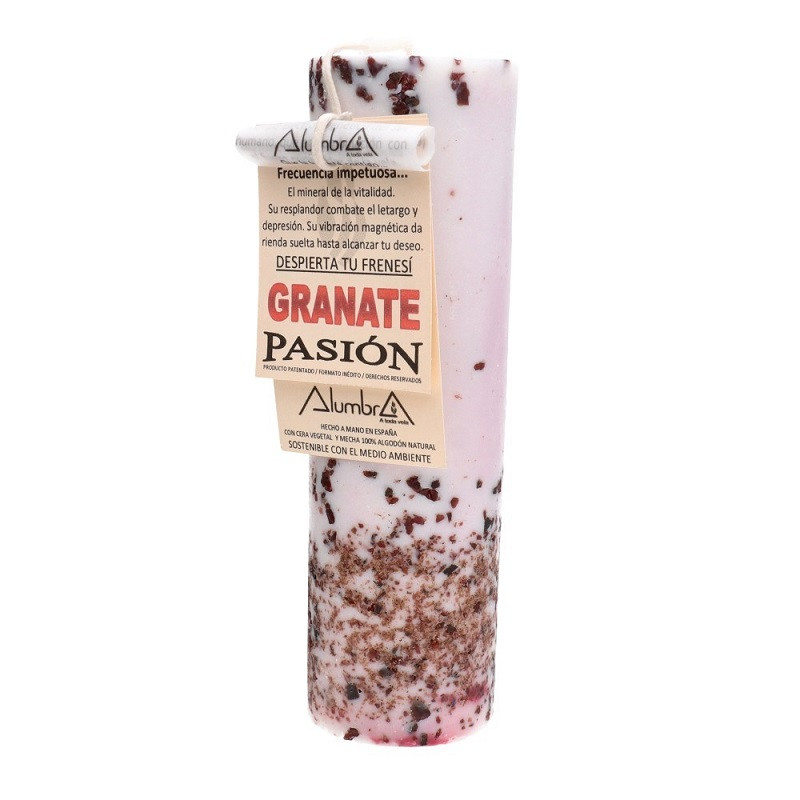 Świeca rytualna Namiętność z kamieniem granat została stworzona dla osób, które chcą obudzić w sobie ogień życia, zwiększyć witalność, rozbudzić pragnienia i wrócić do kontaktu z własną zmysłowością. Wykonana jest z roślinnego wosku oraz knota z naturalnej bawełny, ręcznie wytwarzana w Hiszpanii, w krótkich seriach, z troską o jakość i środowisko. Granat jest minerałem kojarzonym z energią pasji, siły życiowej i odwagi – jego promieniowanie pomaga przełamywać marazm, zmęczenie i przygnębienie, a jednocześnie wzmacnia magnetyzm osobisty.