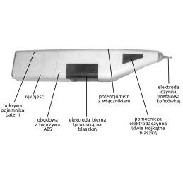 Do zalet urządzenia należy także łatwość obsługi. Szeroka elektroda pomocnicza ułatwia odnajdywanie punktów na tułowiu, rękach i nogach, natomiast główna elektroda w kształcie igły zakończonej kulką pozwala wygodniej pracować w miejscach o dużym zagęszczeniu punktów, takich jak ucho, twarz czy dłonie.