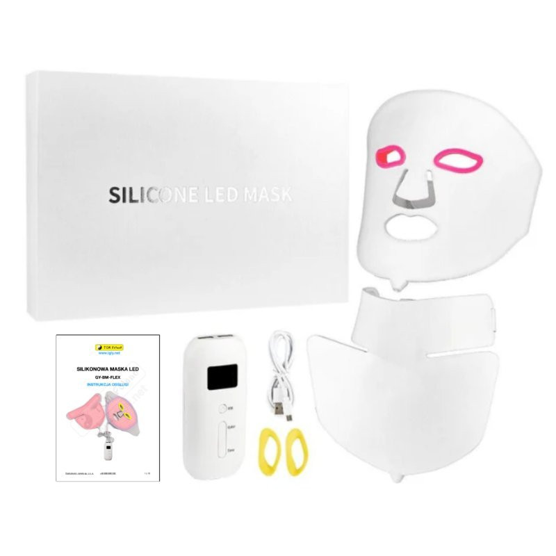 Maska silikonowa LED do terapii światłem to nowoczesne urządzenie do fotobiomodulacji skóry twarzy i szyi, zaprojektowane z myślą o wygodnym, domowym zastosowaniu. Maska została podzielona na dwie części, osobno na twarz i szyję, dzięki czemu pozwala na jednoczesną lub niezależną pracę na obu obszarach. Urządzenie wykorzystuje 7 rodzajów zimnego światła o różnych długościach fal, co pozwala dopasować sposób działania do konkretnych potrzeb skóry.