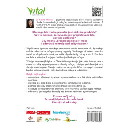Jak zatrzymać ten mechanizm i odzyskać wpływ na własne wybory? Na to pytanie odpowiada dr Claire Wilcox, doświadczona psychiatra specjalizująca się w leczeniu uzależnień, badaczka neurobiologii, a zarazem osoba, która sama pokonała uzależnienie od jedzenia. Jej książka nie proponuje kolejnej restrykcyjnej diety ani chwilowych rozwiązań. To rzetelny, oparty na badaniach naukowych program, który możesz wdrożyć samodzielnie w domu, by stopniowo odbudować zdrową relację z jedzeniem i odzyskać równowagę. Autorka pokazuje, jak dzięki neuroplastyczności przeprogramować utrwalone schematy, zmienić nawyki i uwolnić się od przymusu jedzenia.